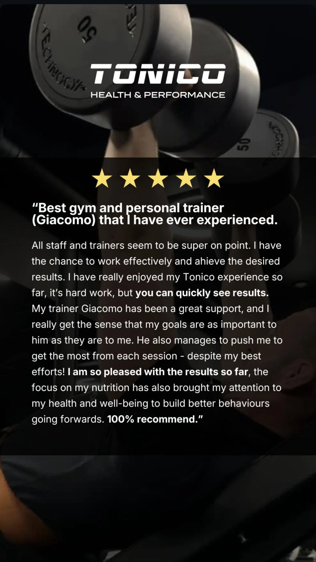 Tonico serves as a definitive study in total brand ownership. By bridging the gap between soul-artistic joy and human connection-and logic-data driven growth and operational efficiency, the project has redefined what a boutique fitness brand can achieve. This work reinforces the principle that branding is the primary communicator of value; it is the difference between "going to the gym" and "joining a movement." Through intentional positioning and relentless execution, Tonico has established itself as a permanent fixture in the luxury performance market. It has attracted an overall 5 star review on Google and ClassPass and celebrities including Dave Bautista and Romeo Beckham.