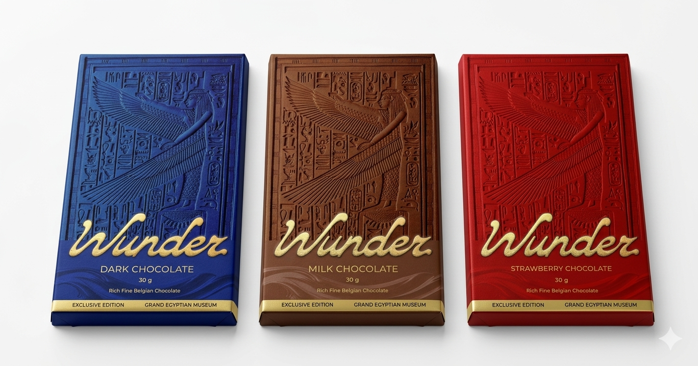 To boost Wunder's presence at the Grand Egyptian Museum, I designed a special edition packaging line featuring gold foil and intricate “Egyptian figure” embossing to serve as a high end cultural souvenir. This strategy targets the museum's international demographic by leveraging global data showing that 72% of luxury travellers favor premium products with exclusive, location specific designs.